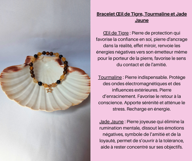 153- Bracelet Œil de Tigre, Tourmaline et Jade Jaune