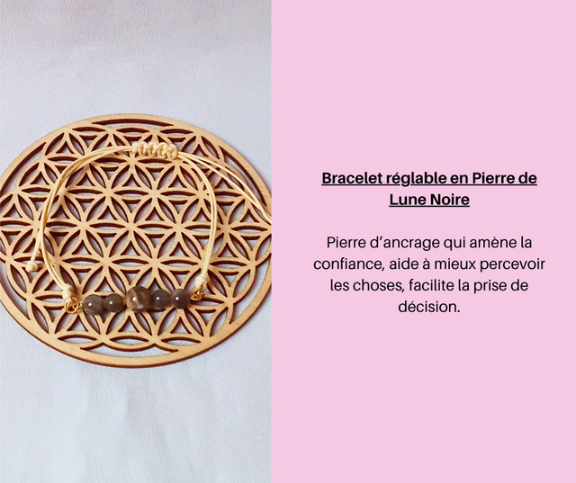 172- Bracelet réglable en Pierre de Lune Noire