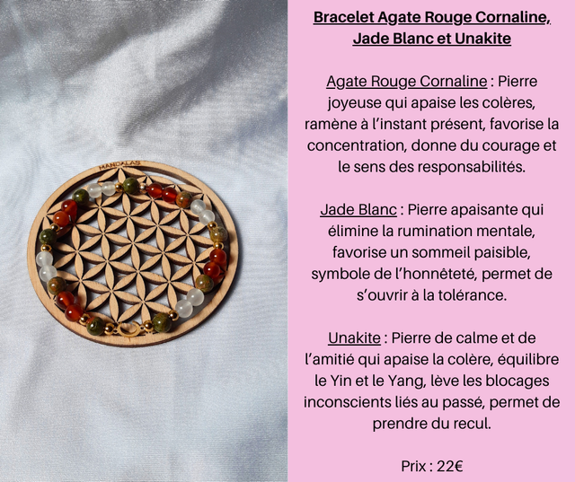 179- Bracelet Agate Rouge Cornaline, Jade Blanc et Unakite