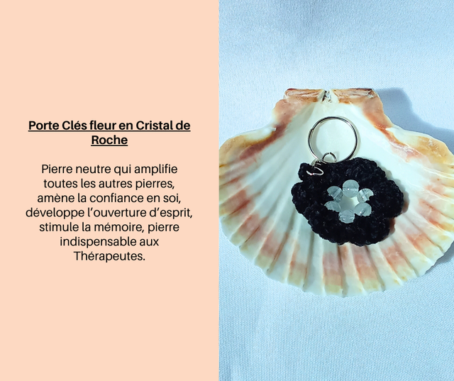33- Porte Clés fleur en Cristal de Roche