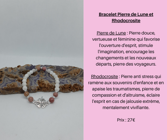 5- Bracelet Pierre de Lune et Rhodocrosite