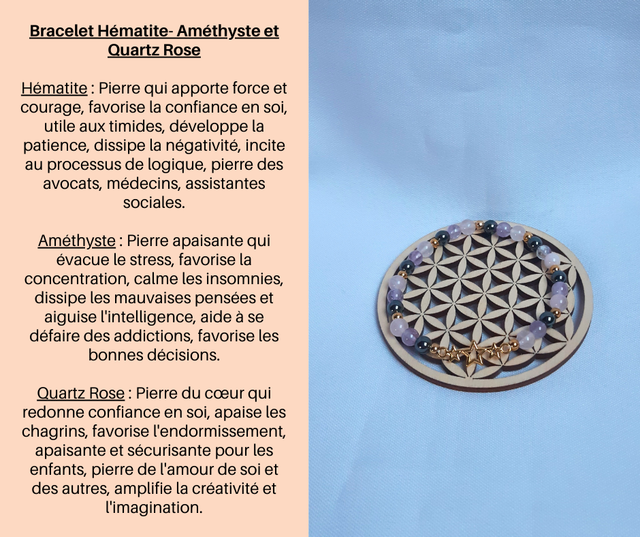 58- Bracelet Hématite- Améthyste et Quartz Rose