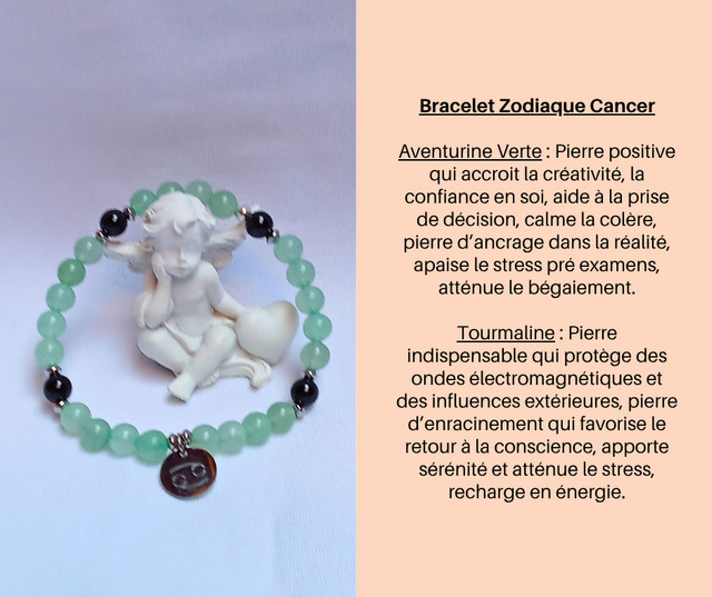8- Bracelet Zodiaque Cancer- Aventurine Verte et Tourmaline