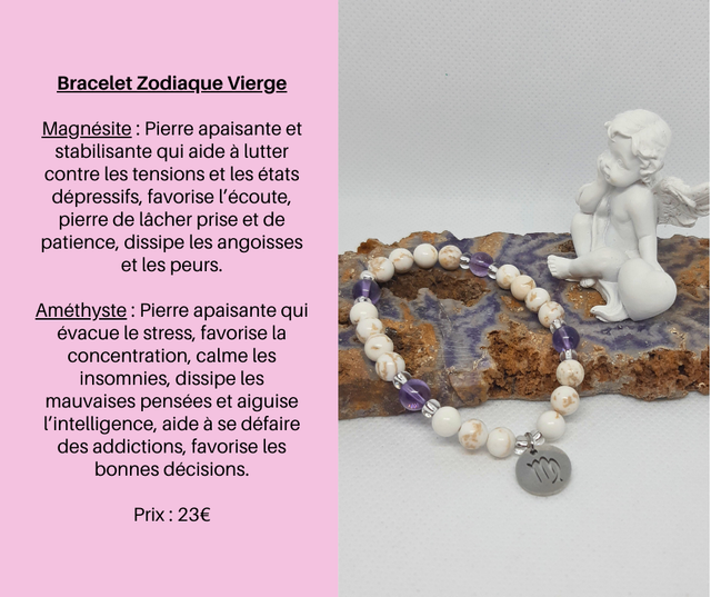 9- Bracelet Zodiaque Vierge- Magnésite et Améthyste